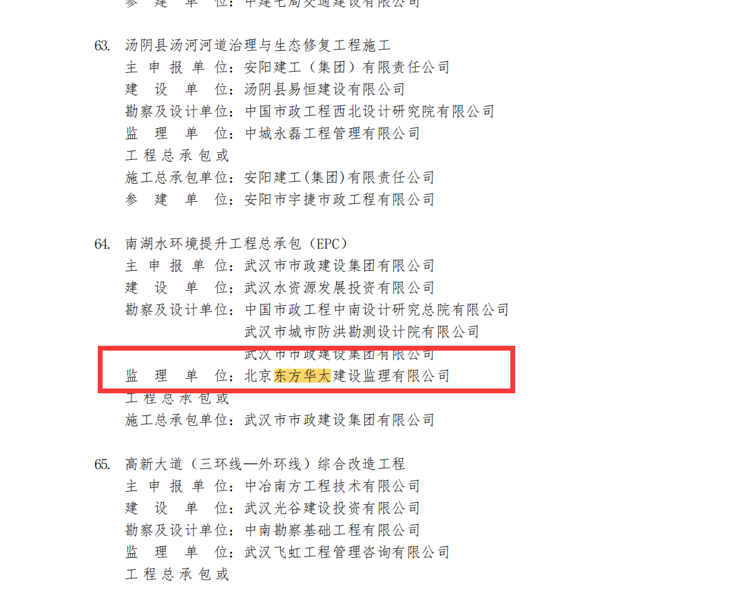 近日,中國(guó)市政工程協(xié)會(huì)公布“2024年度通過(guò)市政工程最高質(zhì)量水平評(píng)價(jià)工程名單”,其中東方華太公司承監(jiān)的南湖水環(huán)境提升工程總承包(EPC)、武昌生態(tài)文化長(zhǎng)廊工程(友誼大道-建設(shè)十路)PPP 項(xiàng)目榮獲“2024年度市政工程最高質(zhì)量水平評(píng)價(jià)”。